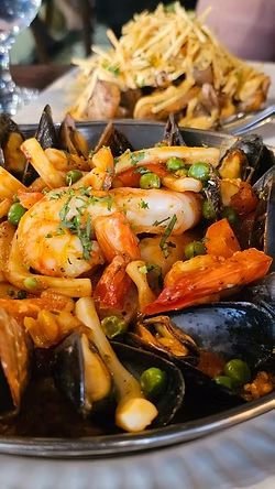 We couldn’t resist sampling a spread, and we were not disappointed. The Spanish Meatballs were tender and rich, the Calamari crisp and perfectly seasoned, the Steak Bites melt-in-your-mouth good, and the Ahi Tuna—fresh, vibrant, and a showstopper. The highlight? Their Seafood Paella, layered with saffron and seafood goodness. We ended on a sweet note with the Pastel De Nata—a flaky, custardy treat that had us dreaming of Lisbon.